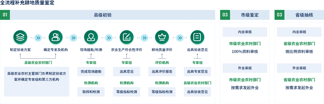 提供縣級初驗、市級鑒定、省級抽核的三級耕地質量驗收管理體系,對各層級驗收工作綜合管理。