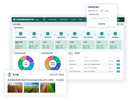 提供智能劃分驗收批次、智能劃分評價單元、一鍵生成培肥方案等智能輔助辦公功能。